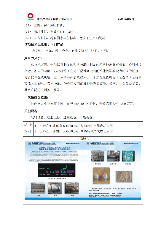 陶瓷磚新型干法短流程工藝關鍵技術與示范