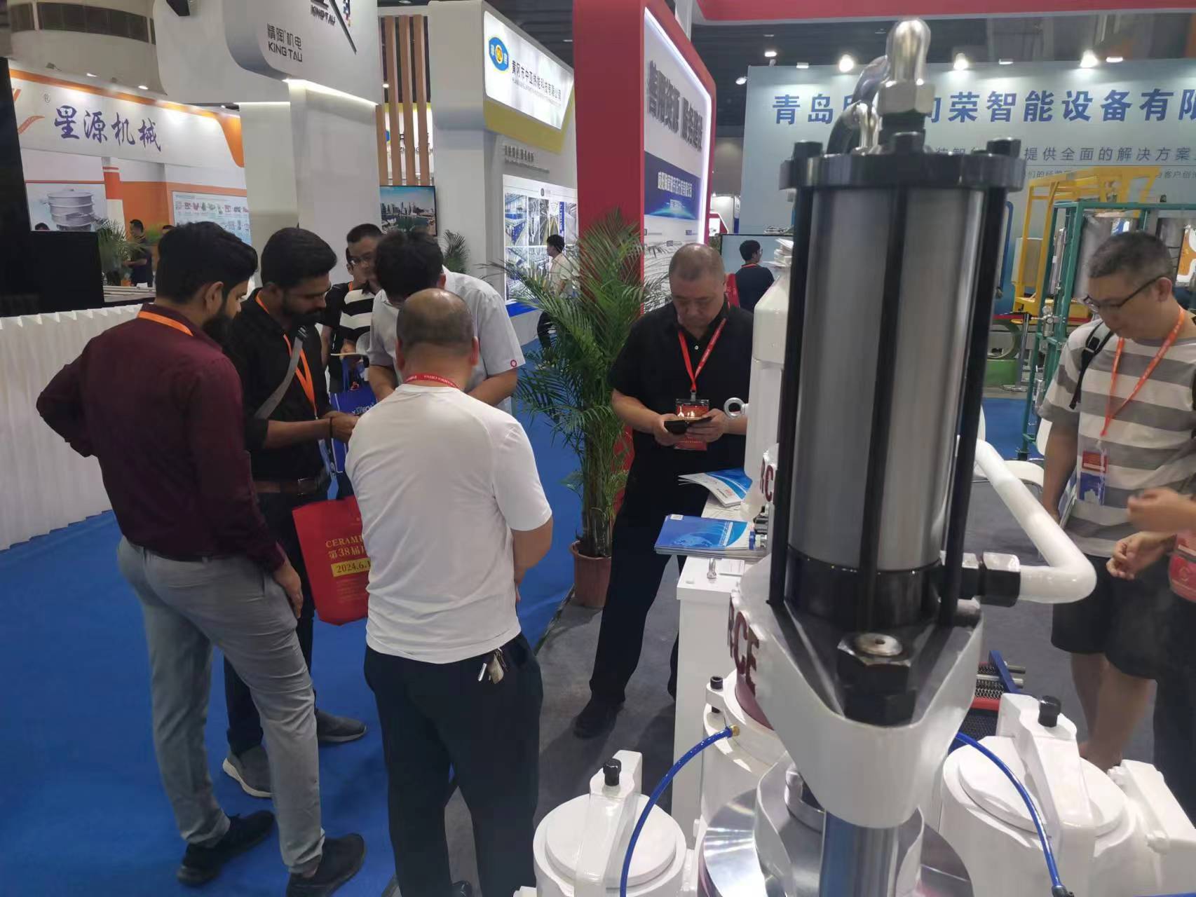 本次展會集中展示了咸陽陶瓷院的科技創(chuàng)新技術及成果,包括:先進陶瓷材料、環(huán)保催化劑及工程設備、干法制粉、YB-300出口型柱塞泵、固廢熱解催化評價平臺、靜摩擦系數(shù)測定儀以及陶瓷磚恢復系數(shù)測定儀等。我院展臺設計新穎、顏色燈光鮮亮、格調醒目,利用多種尺寸的大型噴繪圖片、大型LED屏視頻展示、多臺裝備實物展品、資料圖書等形式進行宣傳推廣,參展期間,我院展臺人流不斷,工作人員專業(yè)熱情地接待各國客戶并進行耐心講解,現(xiàn)場交流氣氛熱烈,受到國內外客戶的高度關注,收獲滿滿。